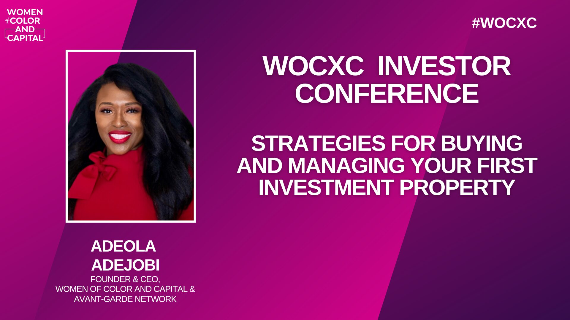 The WOCXC Investor Conference (Virtual) is where trailblazing investors and entrepreneurs converge to unlock new avenues for growth and success. This premier event will delve into investing in companies, venture capital, fund management, and securing essential capital for your business. Gain cutting-edge insights, connect with influential leaders, and discover strategies to elevate your investment portfolio and business ventures. Empower...